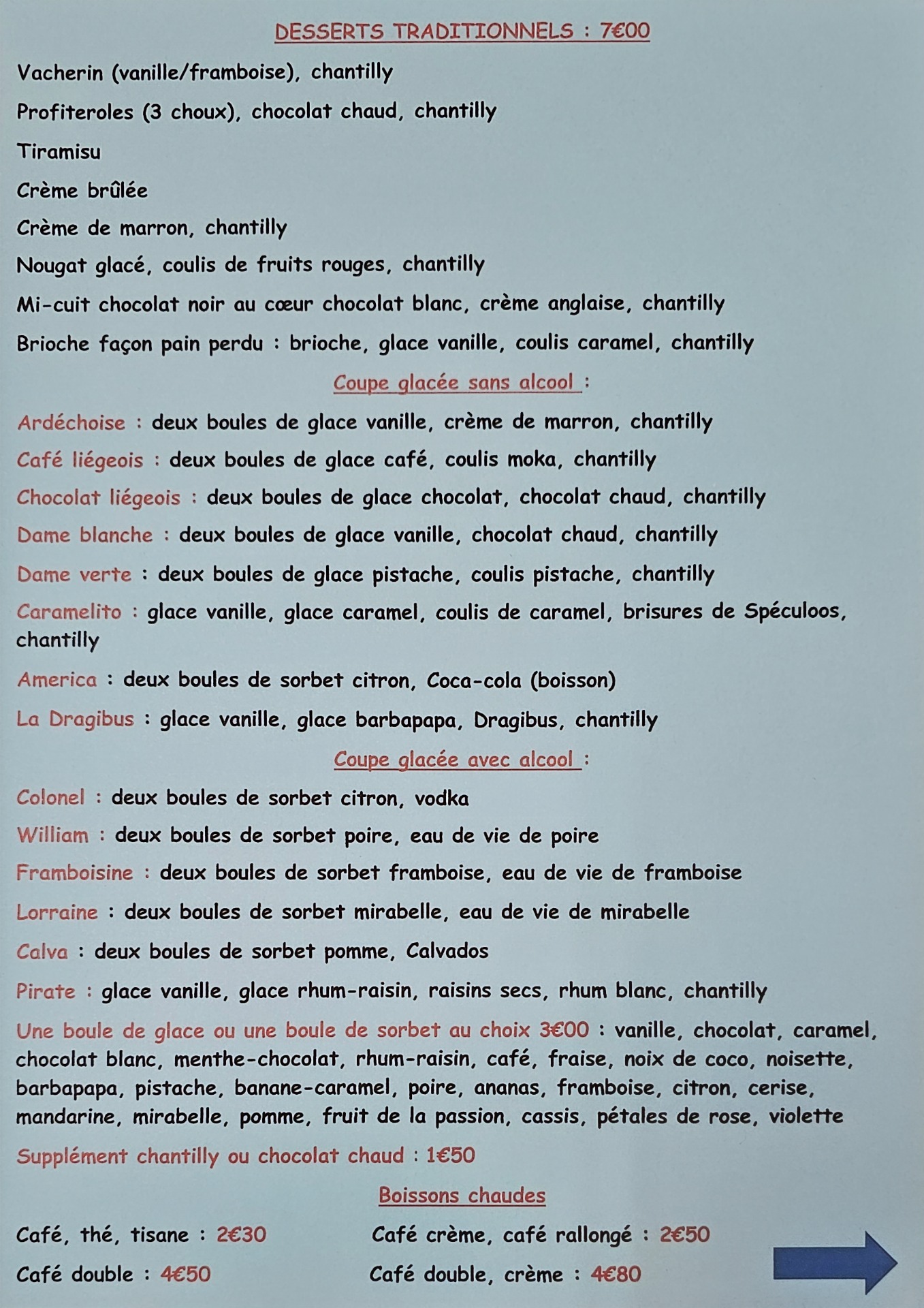 Les desserts se trouvent tout en bas de cette page
